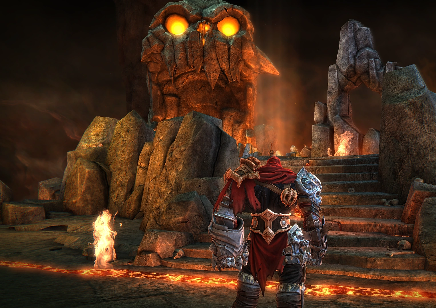Po zlikwidowaniu przeciwnika, Wojna dociera do więzienia, które jest zapieczętowane posągami przedstawiającymi gargulce. Główny protagonista w końcu uwalnia Samaela, który w pierwszym momencie zastanawia się czy Jeździec przybywa w roli kata. Samael dodaje również, że Rada Spopielonych powinna wysłać wszystkich czterech, a nie tylko jednego. Wojna odpowiada, że to nie jego chce zabić. Demon domyśla się, że chodzi o Niszczyciela i zauważa, że główny antagonista jest poza zasięgiem, tak Jeźdźca, jak i jego samego. Wojna zaczyna drwiąco pyta, czy więzienie obudziło w Samaelu tchórza, na co demon wydaje z siebie płonący okrzyk sprzeciwu i wyznaje, że "może, jest sposób", ale Wojna musiałby dostać się do wnętrza Wieży Niszczyciela, której strzeże czworo Wybrańców. Samael nakazuje Jeźdźcowi przynieść mu ich serca, bez zadawania zbędnych pytań, ponieważ powody, dla których mu pomaga, nie są, jego sprawą. Samael na pierwszy cel wyznacza Wojnie Królową Nietoperzy Tiamat, która znalazła schronienie w Katedrze Zmierzchu. Demon ofiaruje również głównemu protagoniście Cieniste Skrzydła, które pozwalają mu wzbić się w powietrze na krótki okres czasu.