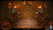 During the battle Mammon attacks by swimming through his riches in a crude attempt to sneak up on the duo as well as making full use of a arsenal of magical artifacts including a giant floating hammer, a book that constantly spews magic attacks, a mirror that produces Mammon copies and a casket that manufactures a endless supply of skeletal warriors.