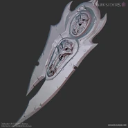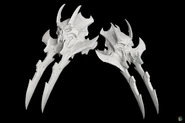 The fifth form of Scorn, this form resembles a perfect balanced Broadsword for a mix of fast and heavy attacks, the sword can split into two swords and can trap opponents in time-voids, reduced movements and mobility. Fury acquired this form when the Lord of the Hollows gave her the Stasis Hollow. The Edge and Scythes of Scorn injuring opponents on all planes of existence, with a range of different attacks. |