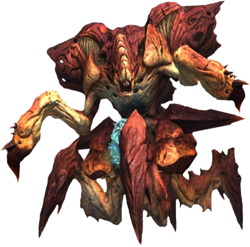 The Griever is an insect like creature of gargantuan proportions who rules over The Hollow in the Destroyed City. Her "pets", the Swarm, have also made the subways their lair - she is the second of the Chosen that War needs to kill for Samael. She seems to have the lowest intelligence of all the Chosen except perhaps for the Stygian, never speaking and acting like a feral beast. She is one of the four tertiary antagonists of Darksiders (the other three being Tiamat, The Stygian, and Silitha), is the second Chosen to be encountered by War and is overall seventh and eighth boss of the game.