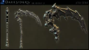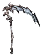 | “ | The scythe was enormous, taller than its wielder. Its blade was a hideous thing, jagged and crafted like the wing of some great beast, longer than Death’s outstretched arms fingertip-to-fingertip. — The Havester, Darksiders: The Abomination Vault |